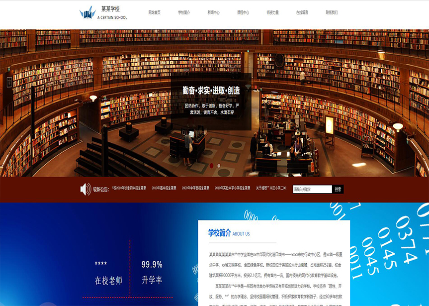 模板名稱:(帶手機(jī)版數(shù)據(jù)同步)自適應(yīng)學(xué)校類藍(lán)色網(wǎng)站模板