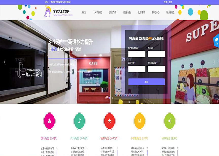 模板名稱:(帶手機(jī)版數(shù)據(jù)同步)自適應(yīng)少兒英語(yǔ)學(xué)校網(wǎng)站模板
