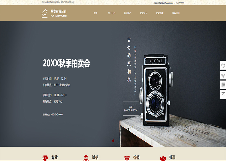 模板名稱:(帶手機(jī)版數(shù)據(jù)同步)自適應(yīng)拍賣典當(dāng)類褐色通用網(wǎng)站模板