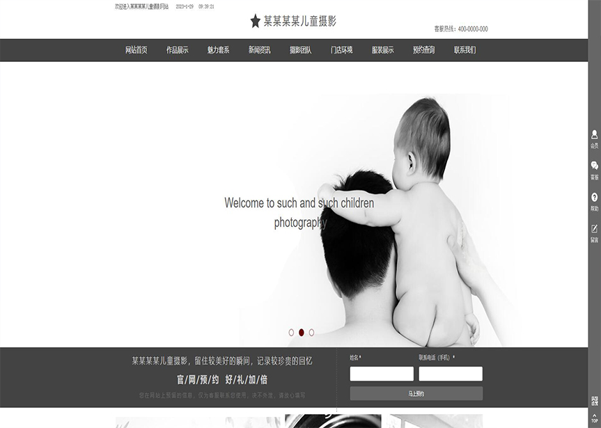 模板名稱:(帶手機(jī)版數(shù)據(jù)同步)自適應(yīng)攝影沖印類兒童攝影網(wǎng)站模板