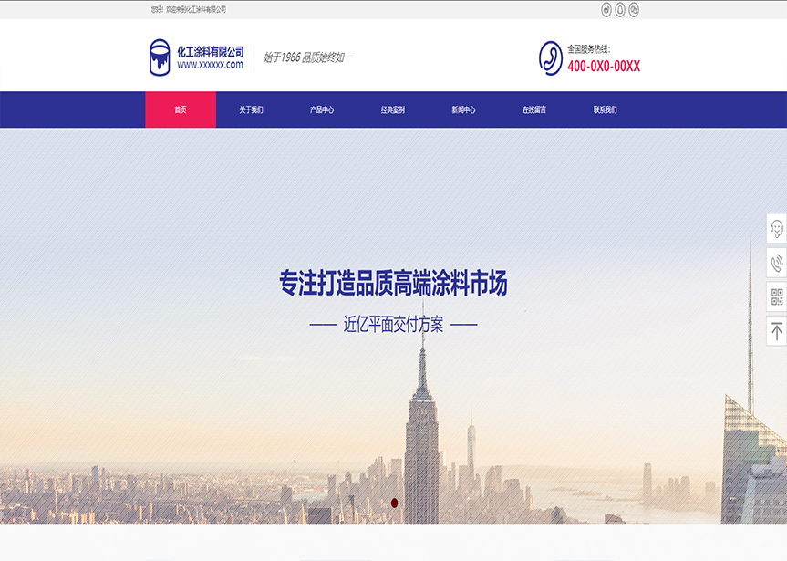 模板名稱:(帶手機(jī)版數(shù)據(jù)同步)自適應(yīng)化工涂料類紫色通用網(wǎng)站模板