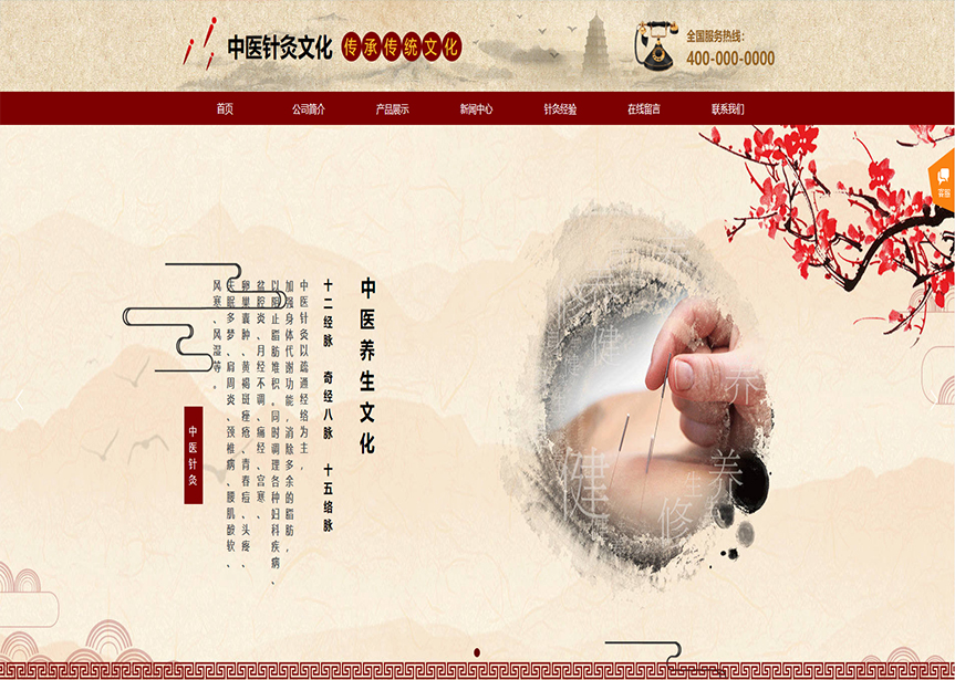 模板名稱:(帶手機(jī)版數(shù)據(jù)同步)自適應(yīng)文化類針灸紅色通用網(wǎng)站模板