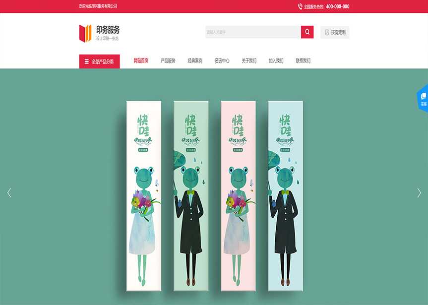 模板名稱:(帶手機(jī)版數(shù)據(jù)同步)自適應(yīng)印刷包裝類紅色通用網(wǎng)站模板