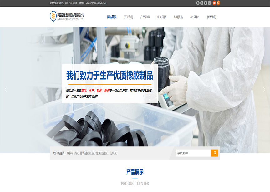 模板名稱:(帶手機(jī)版數(shù)據(jù)同步)自適應(yīng)橡膠塑料制品類藍(lán)色通用網(wǎng)站模板