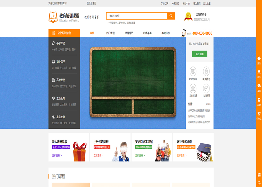 模板名稱:(帶手機版數據同步)自適應商城類教育培訓通用網站模板