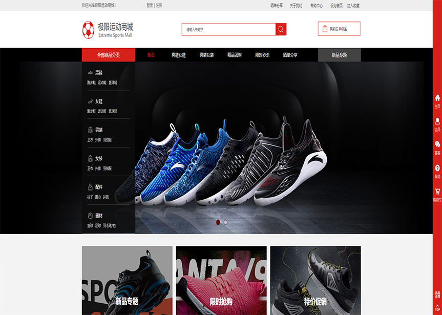 模板名稱:(帶手機版數(shù)據(jù)同步)自適應(yīng)商城類運動商城通用網(wǎng)站模板
