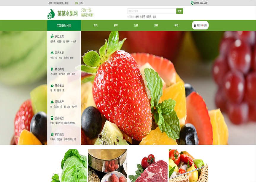 模板名稱:(帶手機版數據同步)自適應商城類水果商城通用網站模板