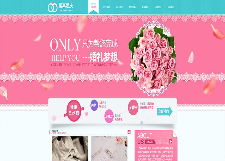 網(wǎng)站模板名稱(chēng):(帶手機(jī)版數(shù)據(jù)同步)自適應(yīng)婚禮婚慶類(lèi)粉色網(wǎng)站模板
