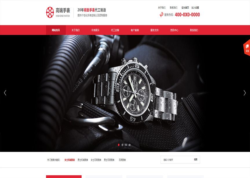 網(wǎng)站模板名稱:(帶手機版數(shù)據(jù)同步)自適應(yīng)鐘表類紅色網(wǎng)站模板