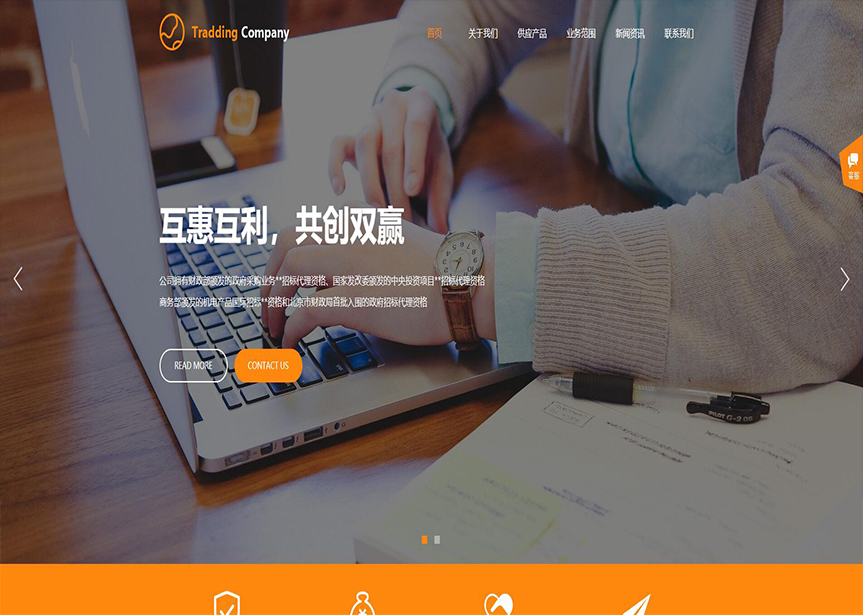網(wǎng)站模板名稱(chēng):(帶手機(jī)版數(shù)據(jù)同步)自適應(yīng)貿(mào)易出口類(lèi)橙色網(wǎng)站模板