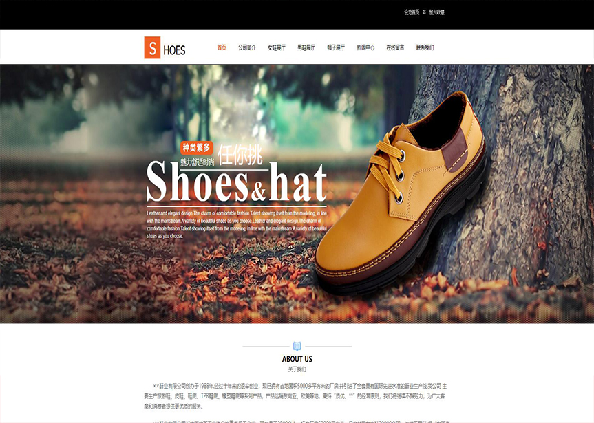 模板名稱:(帶手機版數據同步)自適應鞋帽類橙色網站模板