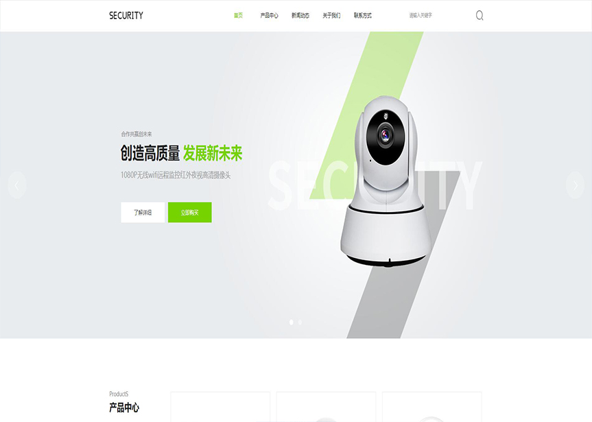 模板名稱:(帶手機版數據同步)自適應安防監(jiān)控器材類綠色網站模板
