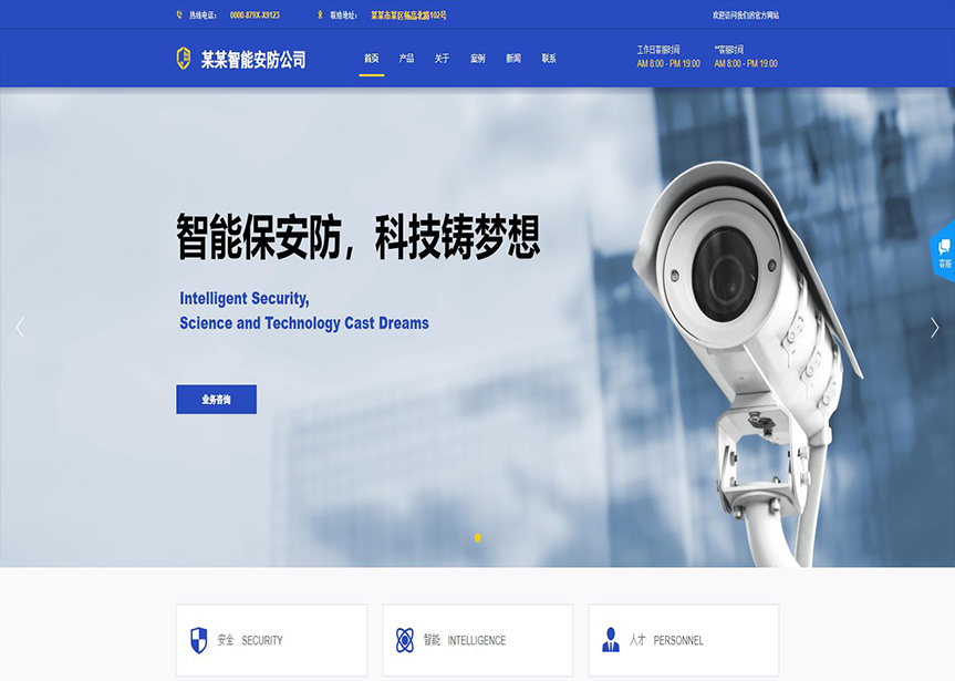 模板名稱:(帶手機版數(shù)據(jù)同步)自適應(yīng)安防監(jiān)控器材類藍(lán)色網(wǎng)站模板