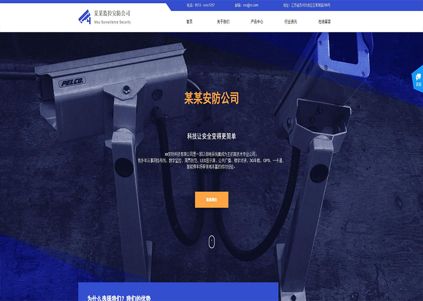 模板名稱:(帶手機(jī)版數(shù)據(jù)同步)自適應(yīng)安防監(jiān)控器材類藍(lán)色網(wǎng)站模板