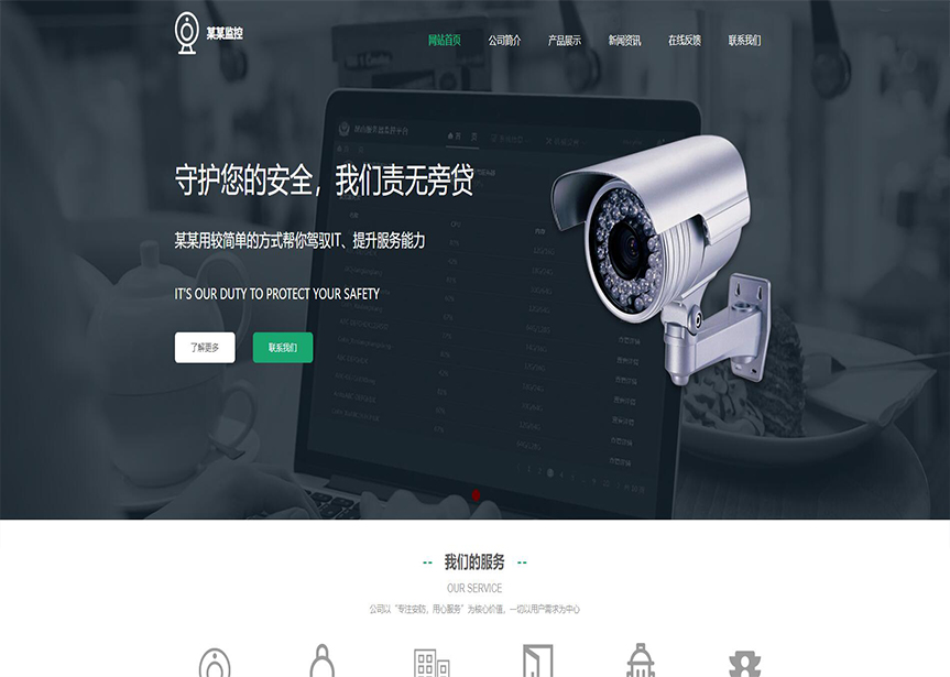 模板名稱:(帶手機版數(shù)據(jù)同步)自適應(yīng)安防監(jiān)控器材類綠色網(wǎng)站模板