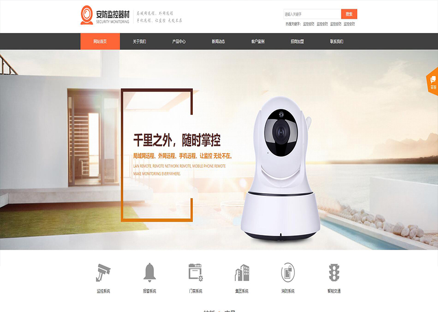 模板名稱:(帶手機版數(shù)據(jù)同步)自適應(yīng)安防監(jiān)控器材類橙色網(wǎng)站模板